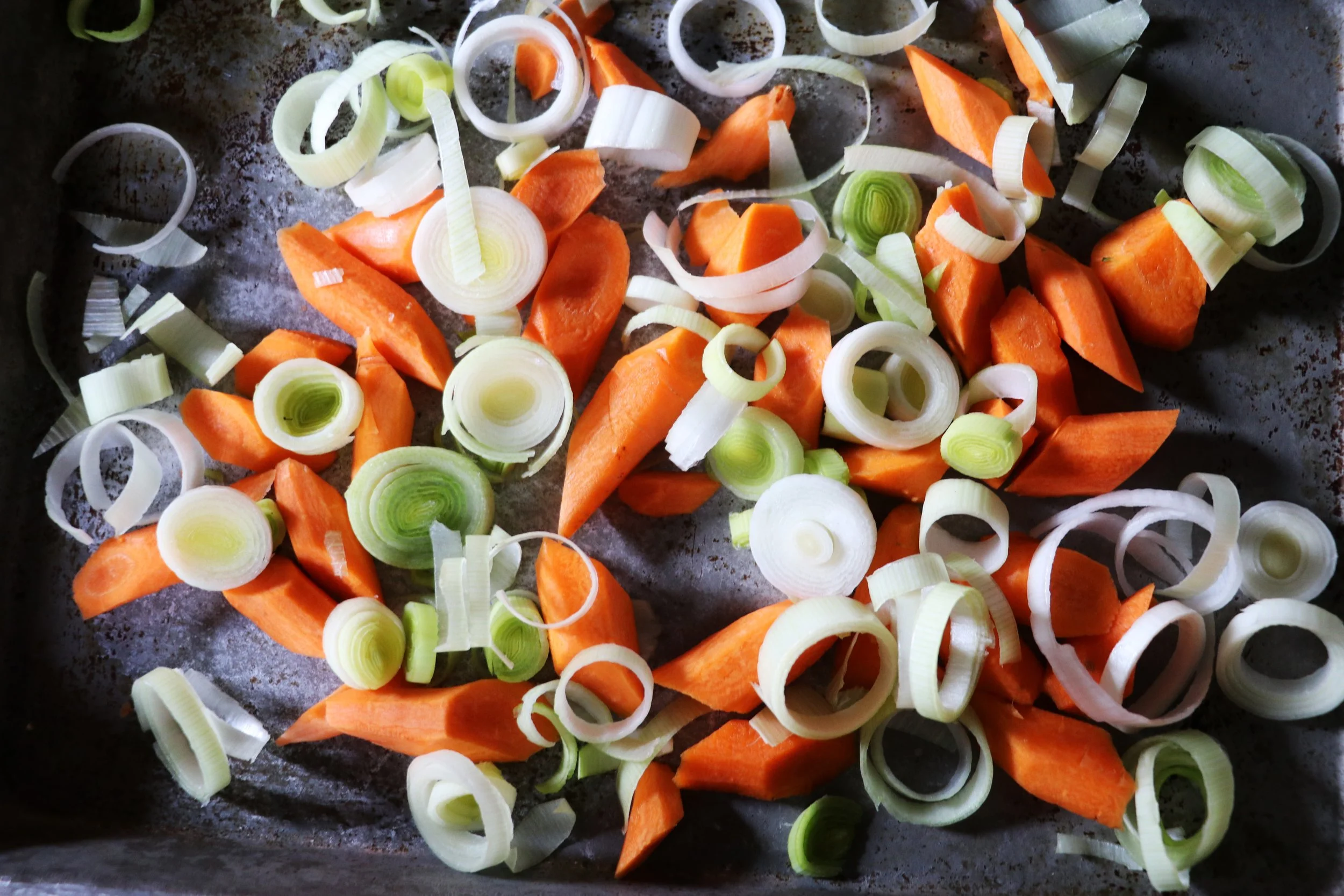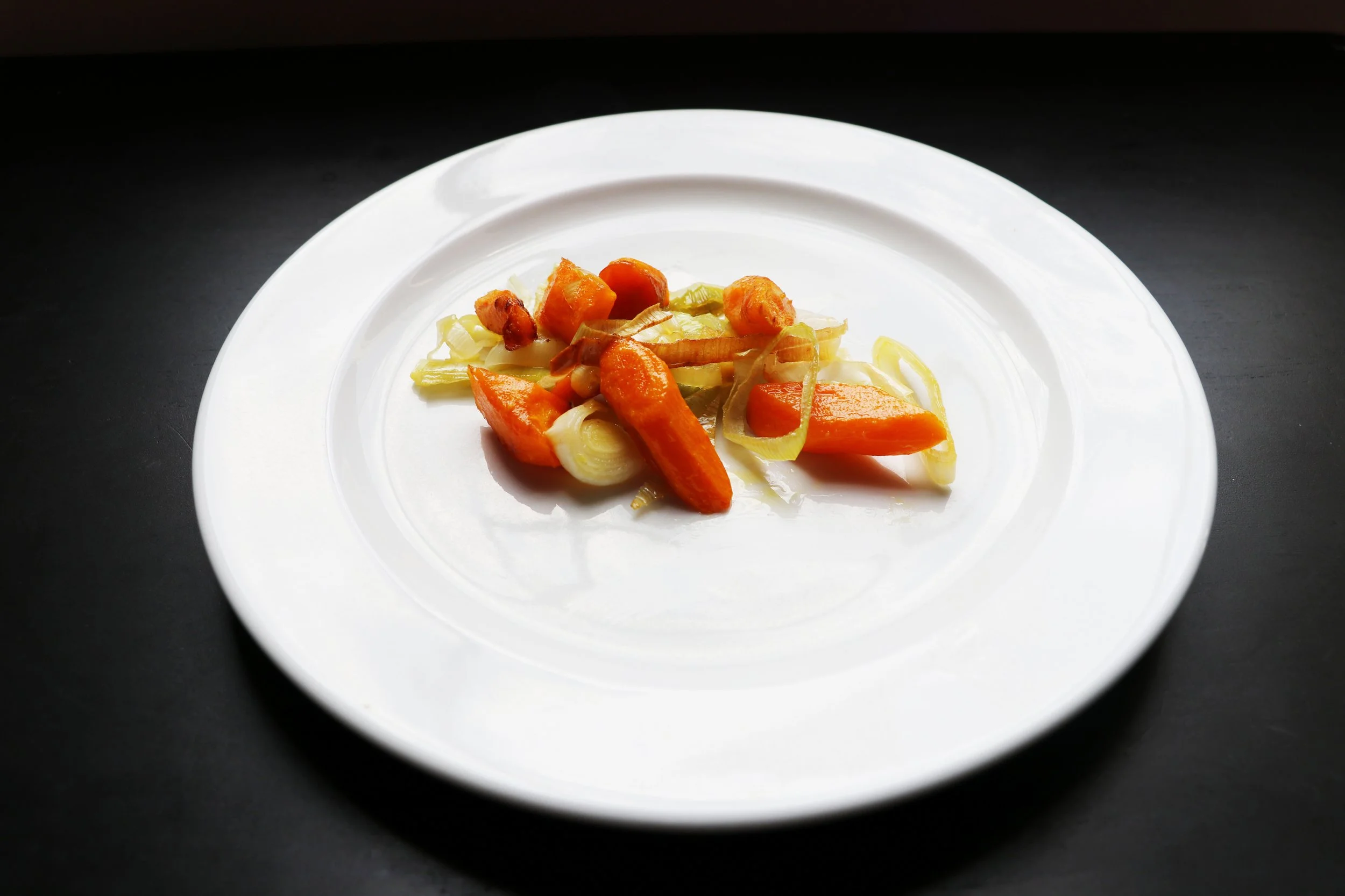 Put some carrots and leeks on a plate and add your bread if you're having it. Drag it around to get the extra butter. Some cow worked really hard to make that butter, so don't waste it. Plus, it's high in Vitamin A, a potent vitamin supporting general human health, so give yourself a break.